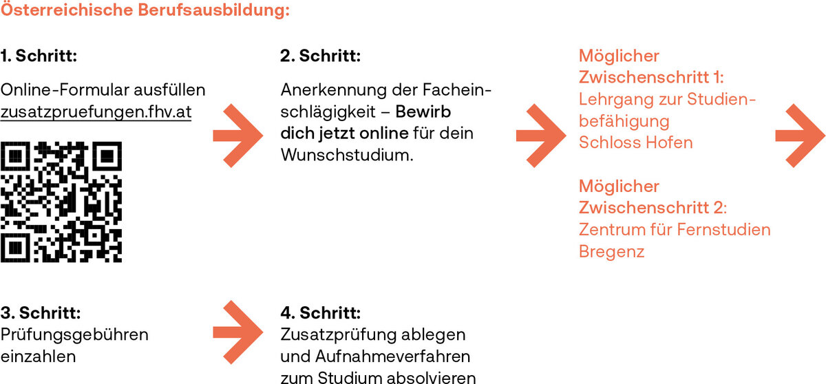 Important: After successfully passing the additional exams, you have fulfilled the formal admission requirements for the bachelor's degree in. In order to be able to start the intended study program at the FHV, you must also positively complete the respective program-specific admission procedure.
