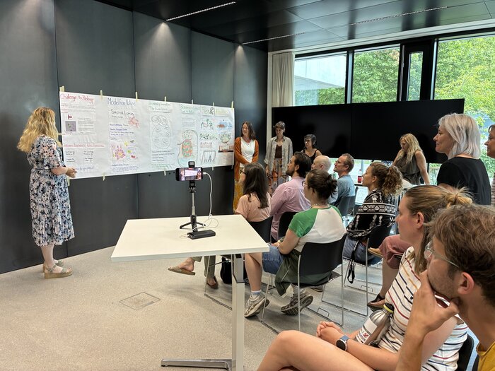 At the beginning, the corporate partners presented their individual questions, which covered everything from the use of AI to cultural participation and sustainability issues. After an exploration phase, during which the students were able to freely exchange ideas and ask questions with the partners, groups of students interested in the various stakeholders formed. In these groups, the students worked together with coaches from the department to develop solutions to the issues described.