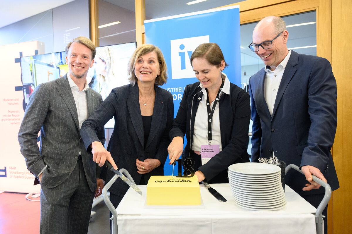 Bei der heutigen 18. Ausgabe der Jobmesse Vorarlberg informierte auch die „Fachkräfteschmiede“ FHV über ihr umfangreiches Angebot an berufsbegleitenden und dualen Studienmöglichkeiten. Die Hochschule vermittelt den Studierenden in über 20 Studienprogrammen in den Bereichen Technik, Wirtschaft, Gestaltung sowie Soziales und Gesundheit Kompetenzen, die sowohl heute als auch in Zukunft am Arbeitsmarkt gefragt sind.