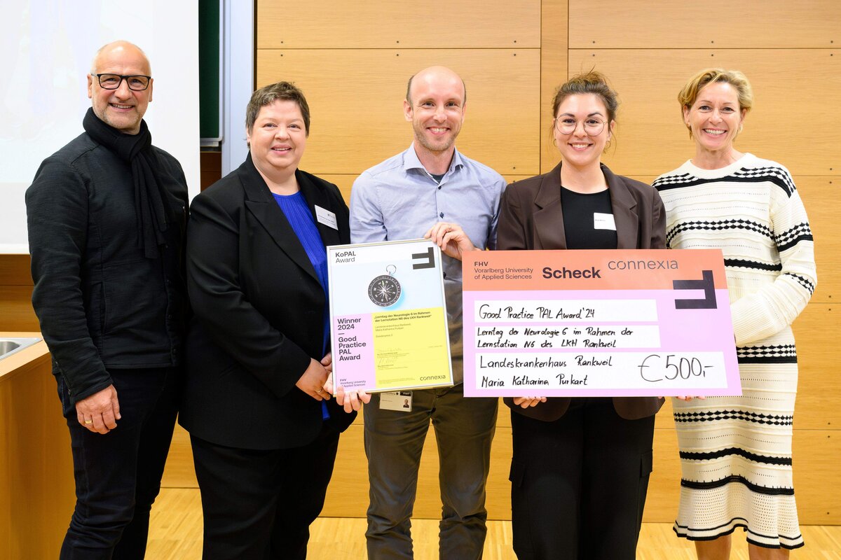 07.10.2024Bereits zum siebten Mal fand die KoPAL-Konferenz für Praxisanleiter:innen an der FHV statt. Im Rahmen des Events wurde zum zweiten Mal der Good Practice PAL Award vergeben. Das Universitätsspital Zürich durfte sich über den Hauptpreis freuen. Jeweils Sonderpreise erhielten das Marienhospital Stuttgart und das LKH Rankweil.