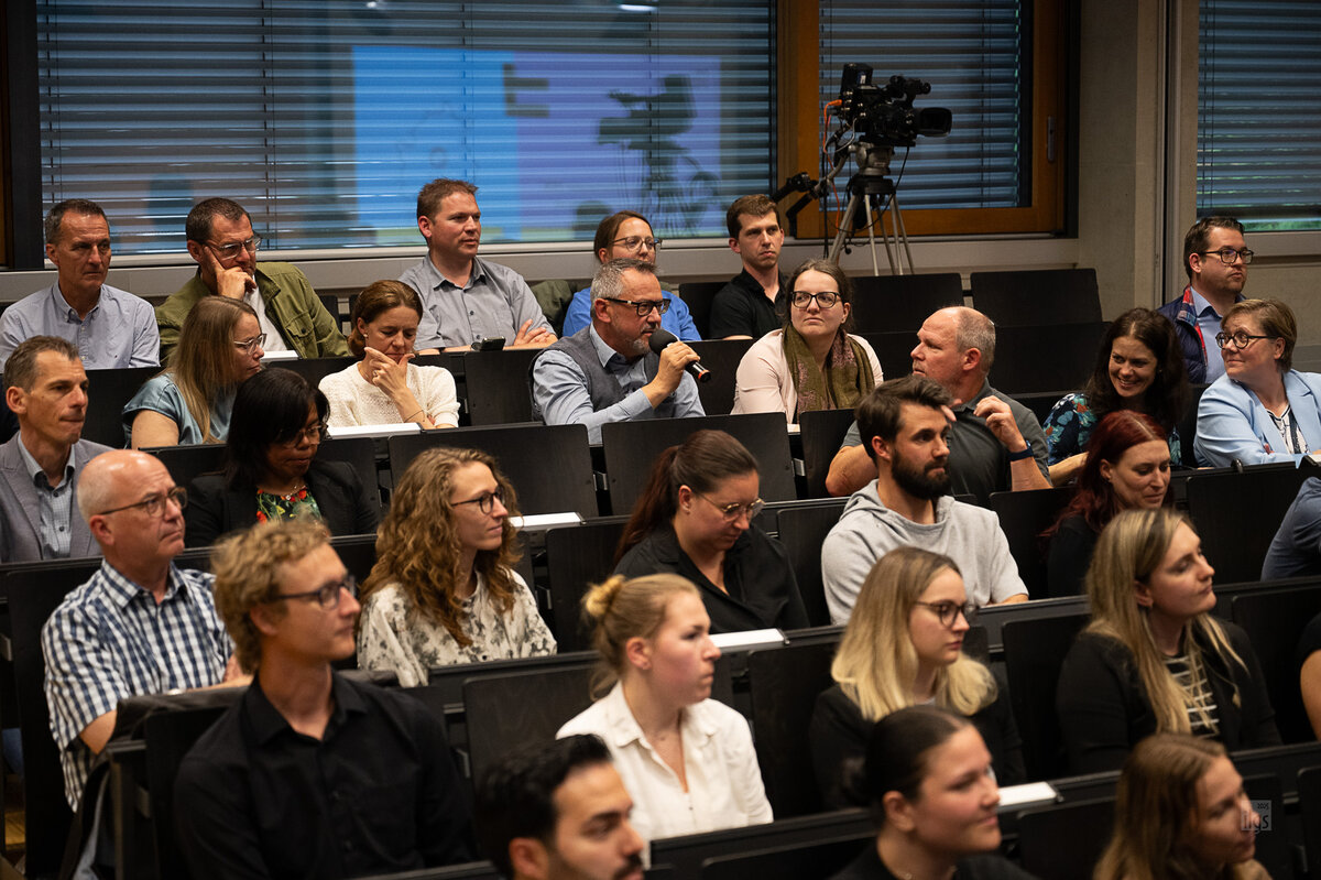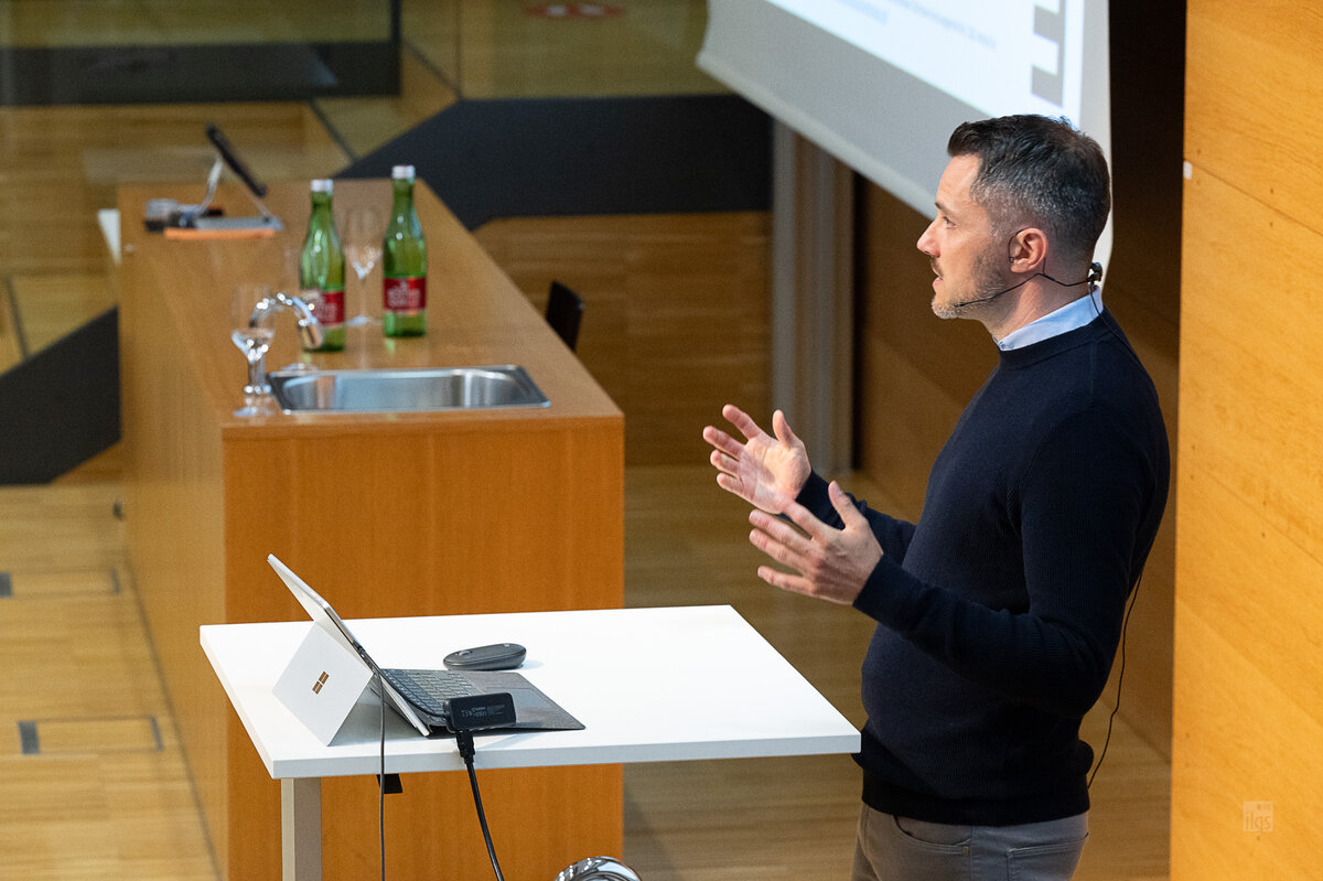 28.05.2025Mehr als 120 Teilnehmende, darunter zahlreiche Personalverantwortliche, HR-Mitarbeitende sowie Interessierte aus Wirtschaft, Verwaltung und Wissenschaft, verfolgten die Vorstellung der Studienergebnisse und beteiligten sich aktiv am fachlichen Austausch. Moderiert von Bernd Schwendinger, Studiengangsleiter Internationale Betriebswirtschaft, bot der Abend fundierte Einblicke in regionale HR-Praktiken und Trends. Studienautor und FHV-Hochschullehrer Hannes Tschütscher stellte die zentralen Ergebnisse der Erhebung vor und ergänzte diese um aktuelle wissenschaftliche Perspektiven. Die durchwegs positive Resonanz verdeutlichte eindrucksvoll den Bedarf nach datenbasierten Orientierungshilfen in einer sich wandelnden Arbeitswelt.