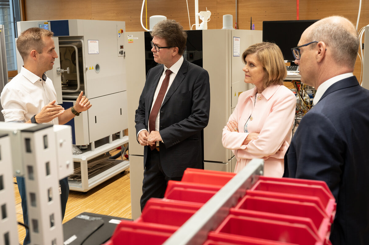 Anlässlich des Besuchs gab es eine Führung ins Forschungszentrum Mikrotechnik und ins Forschungszentrum Energie an der FHV sowie einen Einblick in aktuelle Forschungsprojekte. FHV-Geschäftsführer Stefan Fitz-Rankl zeigte sich erfreut: „Wir hatten einen sehr konstruktiven Austausch. Im Wesentlichen ging es über die nächsten notwendigen Entwicklungsschritte im Fachhochschulsektor.