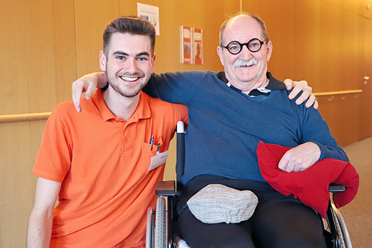 12.02.2025Beim Zivildienst im Sozialzentrum Egg hat Jonas Aberer seine Leidenschaft für einen sozialen Beruf entdeckt. „Ich habe gemerkt, dass ich mich gerne um Menschen kümmere, daher sah ich meine Zukunft in der Pflege“, erzählt der Bizauer. Nach einer Lehre mit Matura als Maschinenbautechniker entschied er sich für ein Studium der Gesundheits- und Krankenpflege an der FHV. „Es sind verschiedene Welten. In einem klassischen Handwerksberuf hast du täglich mit Werkstoffen und Maschinen zu tun. In der Pflege am Menschen sind auch die Hände das wichtigste Werkzeug. Es gibt aber einen großen Unterschied und der zeigt mir heute, dass ich die richtige Entscheidung getroffen habe. Ich habe mit Menschen zu tun, es geht um Emotionen und um Lebenssituationen. Ich bekomme so viel Dankbarkeit und Wertschätzung für meine geleistete Arbeit und das direkt und Tag für Tag. Der Umstieg hat mein Leben bereichert“, betont Jonas Aberer rückblickend.