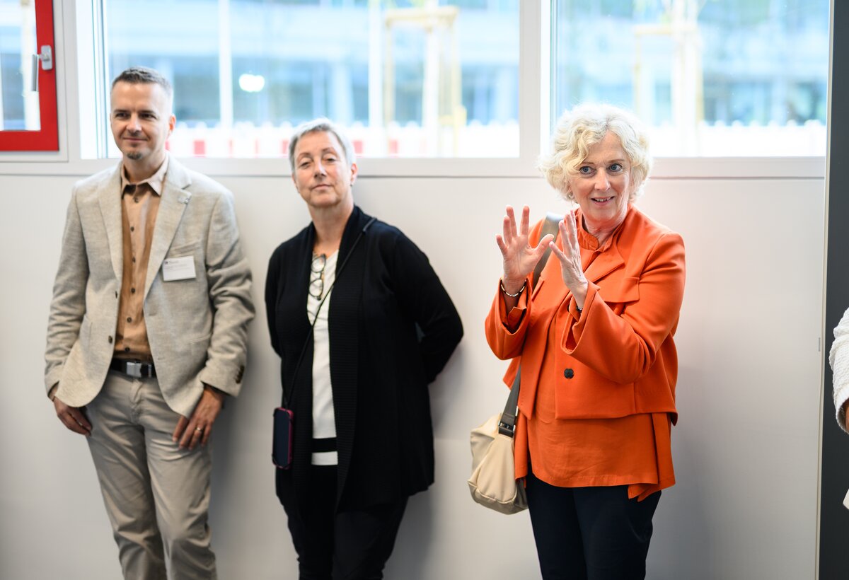 23.09.2024Kolleg:innen und Kooperationspartner:innen aus der Praxis und Politik erhielten einen Einblick & Ausblick auf das neue Gebäude an der FHV. Nach der Begrüßung durch die Forschungs- und Kompetenzfeldleitungen, hatten die Besucher:innen die Möglichkeit, Einblick in die Forschung und Lehre im Sozial- und Gesundheitsbereich zu erhalten. Das Event stand ganz im Zeichen eines partnerschaftlichen Austauschs und die neuen Räumlichkeiten boten eine eindrucksvolle Kulisse. Die Programmpunkte umfassten bspw. die Einführung ins Simulationstraining, einen Einblick ins UX/XR Innovationslabor des HCT-Forschungszentrums oder in eine Lehrveranstaltung des Studiengangs Gesundheits- und Krankenpflege. Mit dem Einsatz einer virtuellen Brille tauchten die Besucher:innen in die Anatomie und Physiologie ein. Diese Gelegenheit nutzten nicht nur Kolleg:innen aus dem Praxis, sondern auch Landesrätin Katharina Wiesflecker.