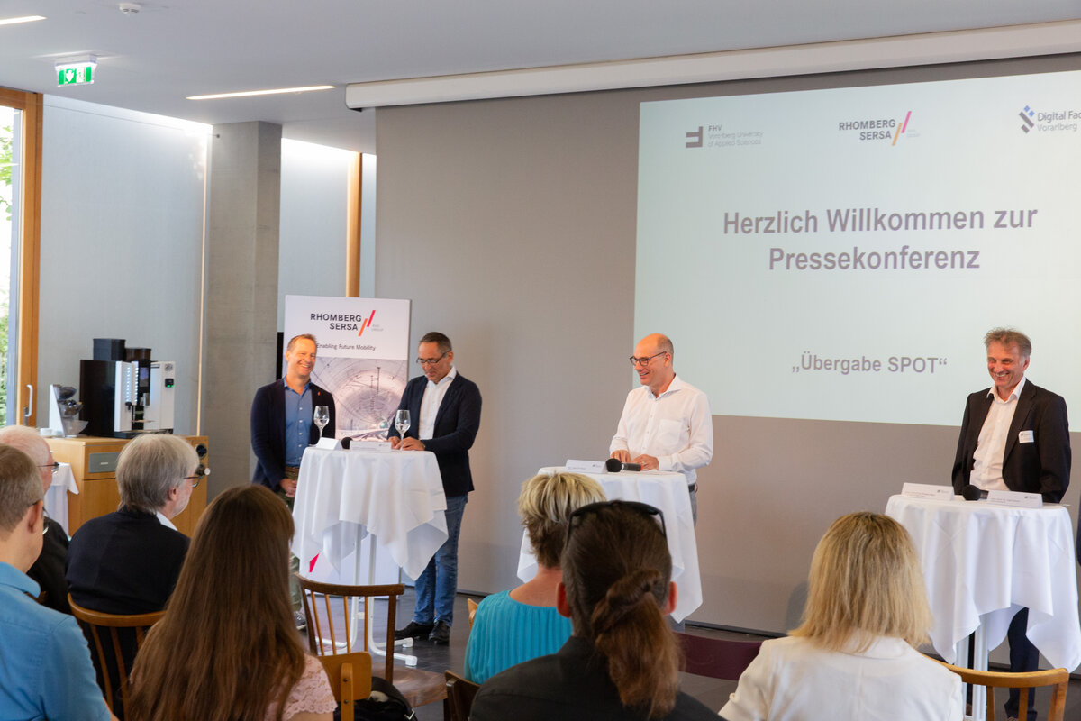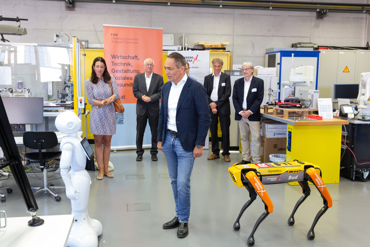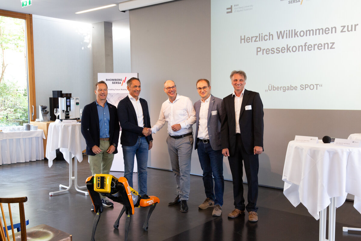 05.09.2023„Die Übergabe des Roboterhundes SPOT ist ein Zeichen der erfolgreichen und engen Kooperation mit führenden Unternehmen in Vorarlberg. Gemeinsam treiben wir die Digitalisierung voran. Der SPOT bereichert unsere Forschungsteams und unterstützt in spannenden Zukunftsthemen“, bedankt sich Stefan Fitz-Rankl, Geschäftsführer der FHV, anlässlich der Übergabe. Mit der Schenkung des High-Tech-Tools wird eine erfolgreiche und langfristige Partnerschaft fortgesetzt, die einerseits die wissenschaftliche Arbeit vorantreibt und andererseits praxisnahe Lösungen entwickelt.