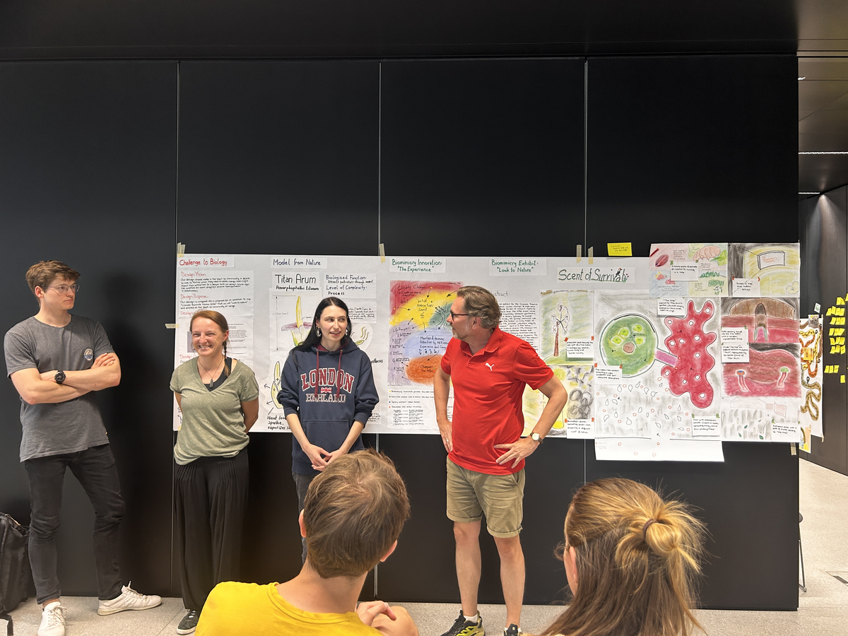 Ein weiteres wichtiges Learning für die Studierenden war, welchen Einfluss interdisziplinäre Kollaboration auf Innovation hat. Auch der Biomimicry-Prozess zeigt: Zukünftige, komplexe Herausforderungen lassen sich nur gemeinsam aus verschiedenen Fachrichtungen heraus interdisziplinär lösen. Wie es sich anfühlt, Teil eines solchen Teams zu sein – und wie sich diese Teams am besten unterstützen und anleiten lassen – auch das war für die Teilnehmer:innen erfahrbar.
