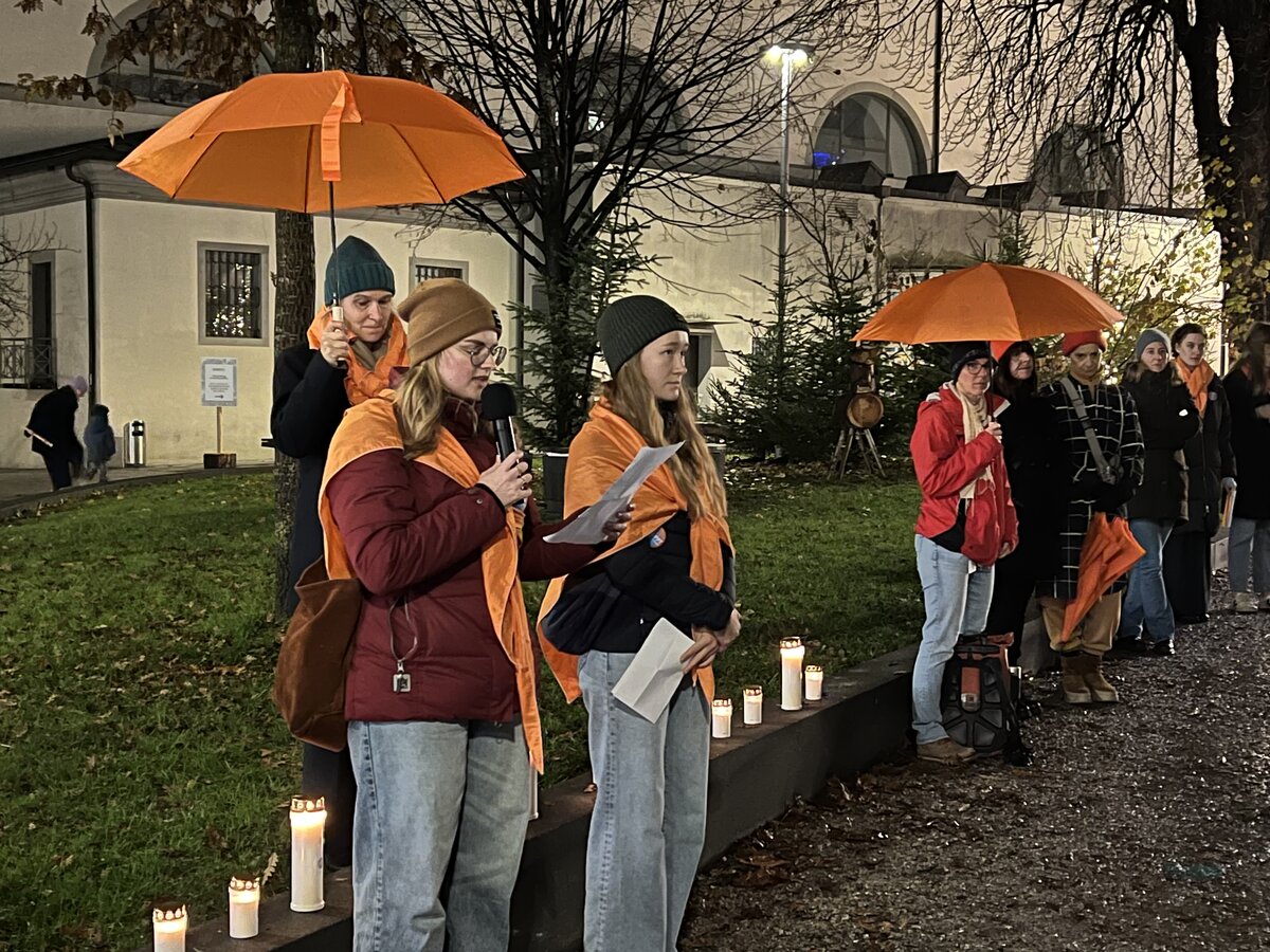 Um ein sichtbares Zeichen der Solidarität mit Opfern von geschlechtsspezifischer Gewalt zu setzen, haben der Fachbereich Soziales und Gesundheit gemeinsam mit der Stabstelle Diversität und der ÖH einen Schweigemarsch zum Stadt-/Pfarrpark der Stadt Dornbirn mit anschließender Mahnwache organisiert.