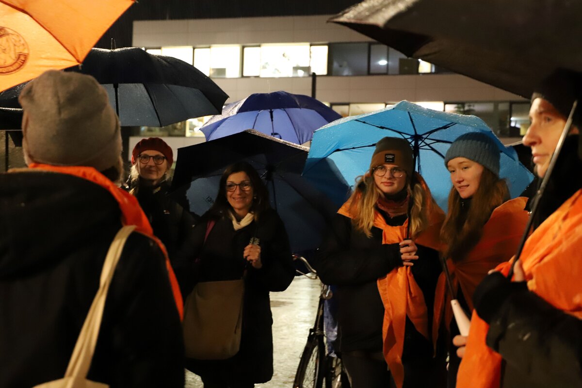 04.12.2023Die UN-Kampagne „Orange The World“ findet jährlich zwischen dem 25. November und dem 10. Dezember statt. Weltweit erstrahlen in diesen 16 Tagen Gebäude in oranger Farbe, um ein sichtbares Zeichen gegen Gewalt an Frauen zu setzen – so auch die FHV. Im Rahmen eines Fackelzuges von der Hochschule bis zur Europapassage in Dornbirn bekundeten die Teilnehmenden ihre Anteilnahme für jene 26 Frauen in Österreich*, die bis November in diesem Jahr in Österreich unter Gewalteinwirkung gestorben sind. Es folgte eine 30-minütige Lesung zum Gedenken an die Opfer.