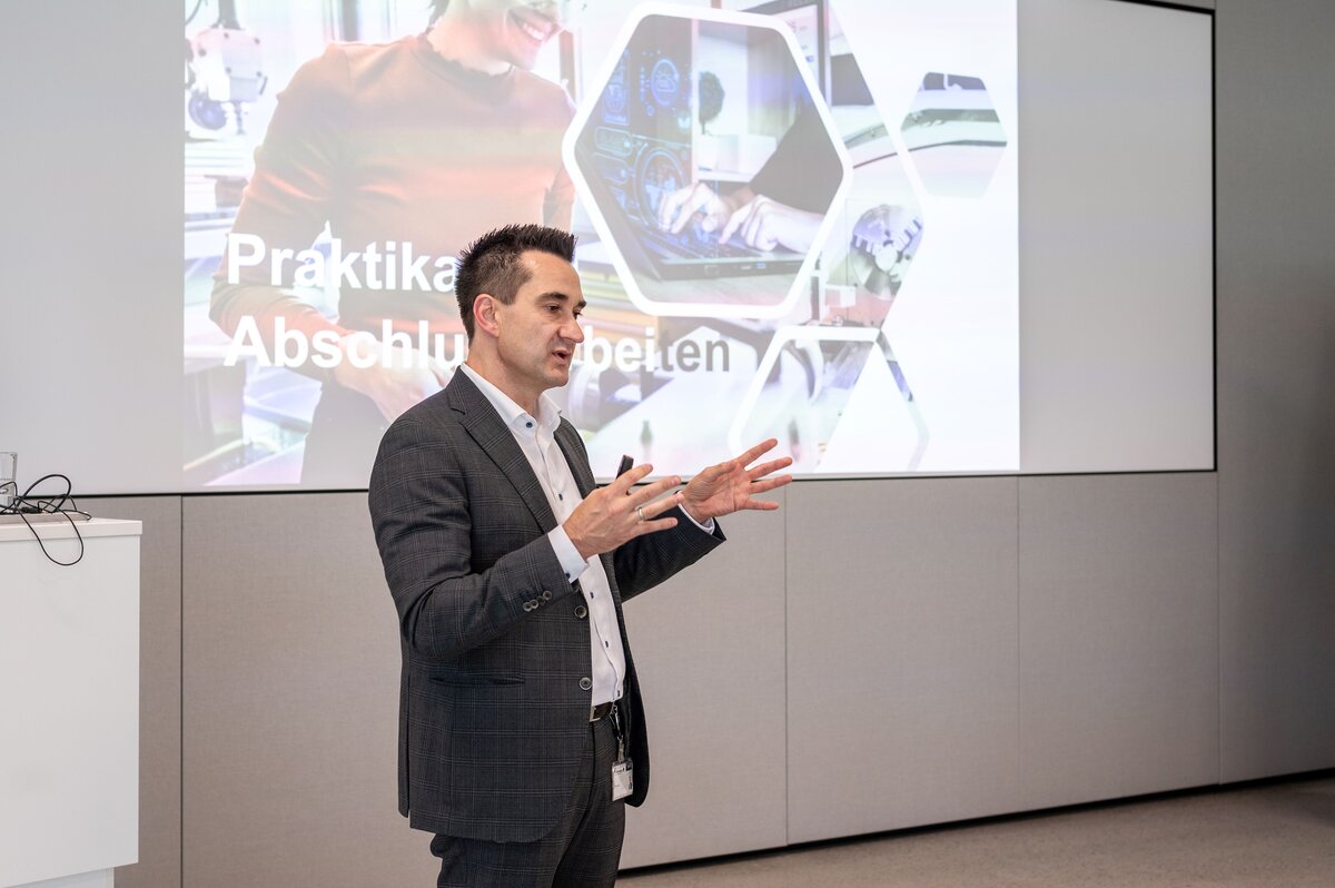Im Mittelpunkt stand auch das Thema „Frauen in der Technik“. Anna Knorr, Studiengangsleitung Nachhaltige Energiesysteme an der FHV, und Nadine Haas, Projektleiterin bei Doppelmayr, sprachen über die Herausforderungen, Zukunftsvisionen und Wünsche. Florian Buehler, Experte für Künstliche Intelligenz (KI) an der FHV, beleuchtete die transformative Rolle von KI in der modernen Geschäftswelt. Deren Relevanz und das Potenzial verdeutlichte er durch konkrete Anwendungsbeispiele aus verschiedenen Branchen. Darüber hinaus stellte er praktische Tipps und Strategien vor, wie Unternehmen KI effektiv nutzen können. Der Vortrag bot wertvolle Einblicke in die sich schnell entwickelnde Technologie und ihre Auswirkungen auf die Industrie in Zeiten des Fachkräftemangels. Abschließend fand eine Betriebsführung bei Doppelmayr statt.