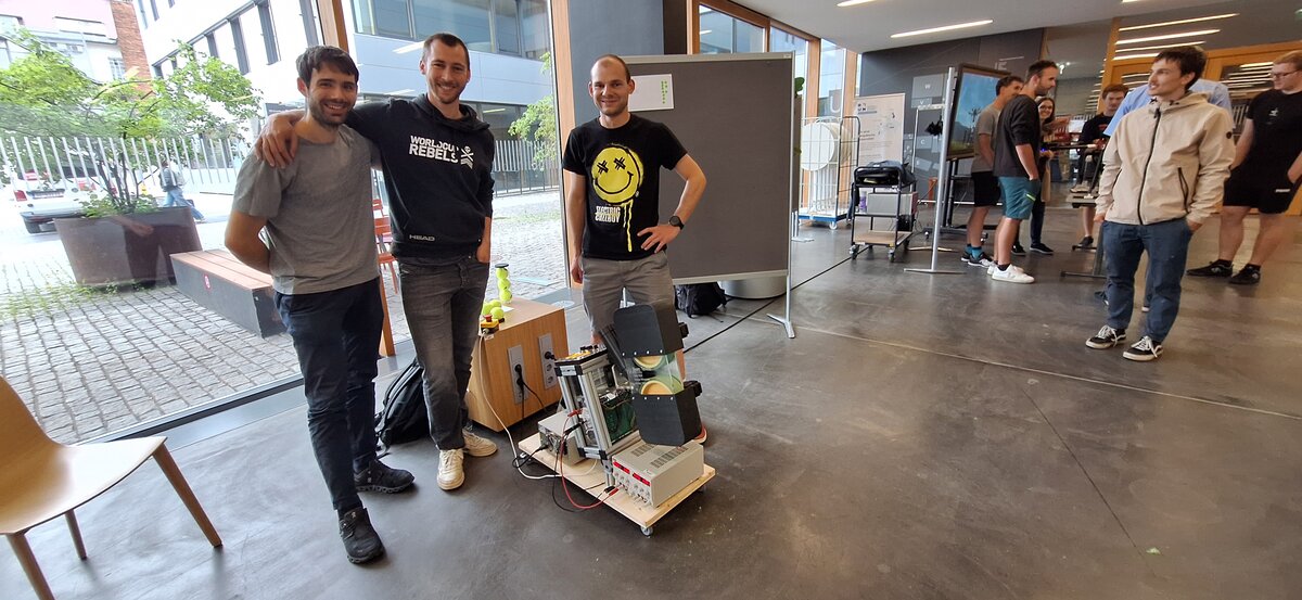 Zum Sieger des Tages wurde das Projekt Tennisball-Wurfmaschine gewählt. Diese ermöglicht es, die Wurfgeschwindigkeit, den Winkel und die Spin-Geschwindigkeit des Balls individuell einzustellen. Dabei werden Abschussgeschwindigkeiten von über 100 km/h erreicht sowie Spins mit einer Winkelvariation von bis zu 360°. Die Einstellungen erfolgen über Dreh-Potentiometer und werden auf einem Display angezeigt.