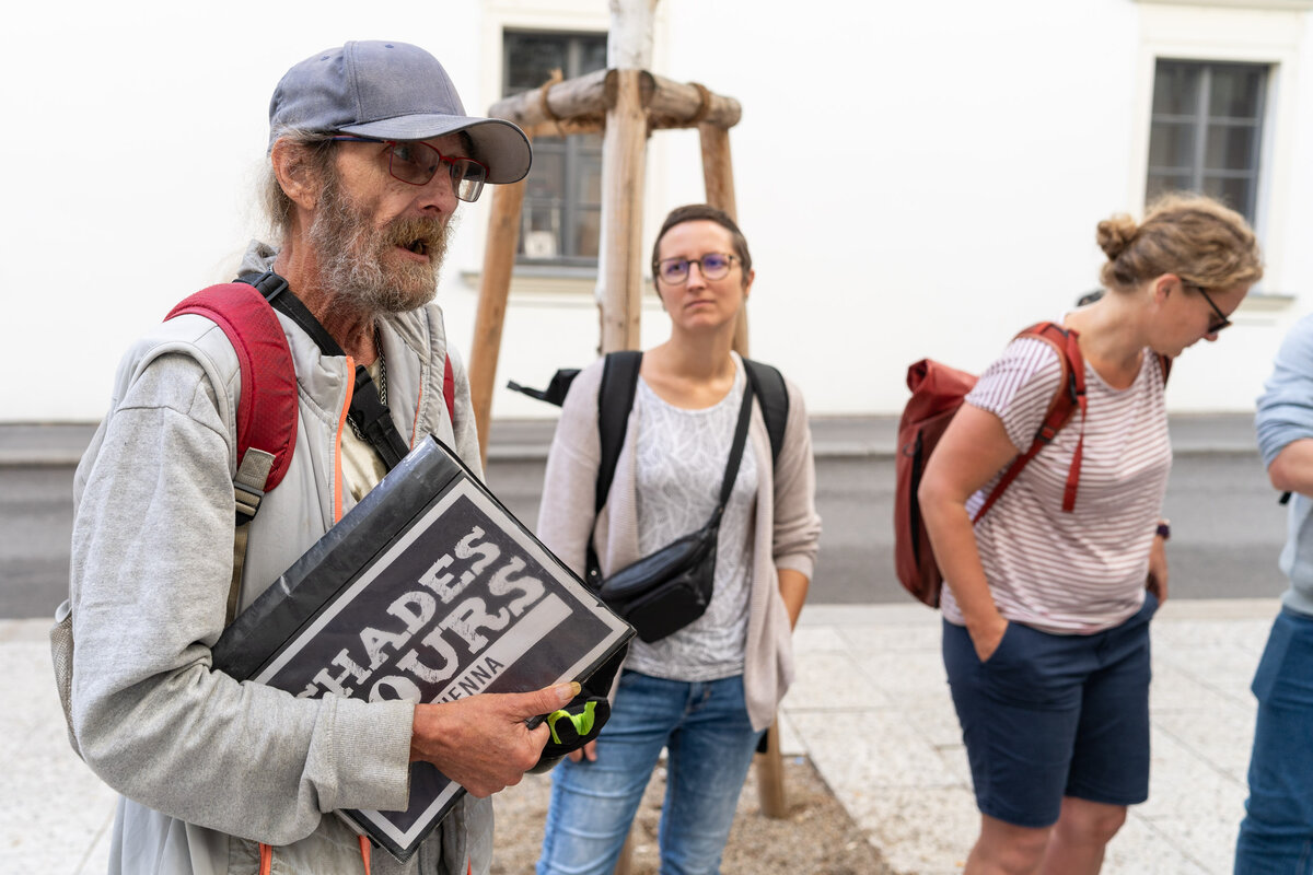 Die Studierenden der FHV entdeckten mit Guide Josef, was ein Leben auf den Straßen Wiens bedeutet. Humorvoll und zugleich ernst und eindrucksvoll schilderte er, wie es dazu kam, dass er selbst zweimal von Obdach- bzw. Wohnungslosigkeit betroffen war. So lernten die Studieren eine ganz andere Seite Wiens kennen und auch, mit welchen Herausforderungen obdachlose Menschen in einer der lebenswertesten Städte der Welt konfrontiert sind.