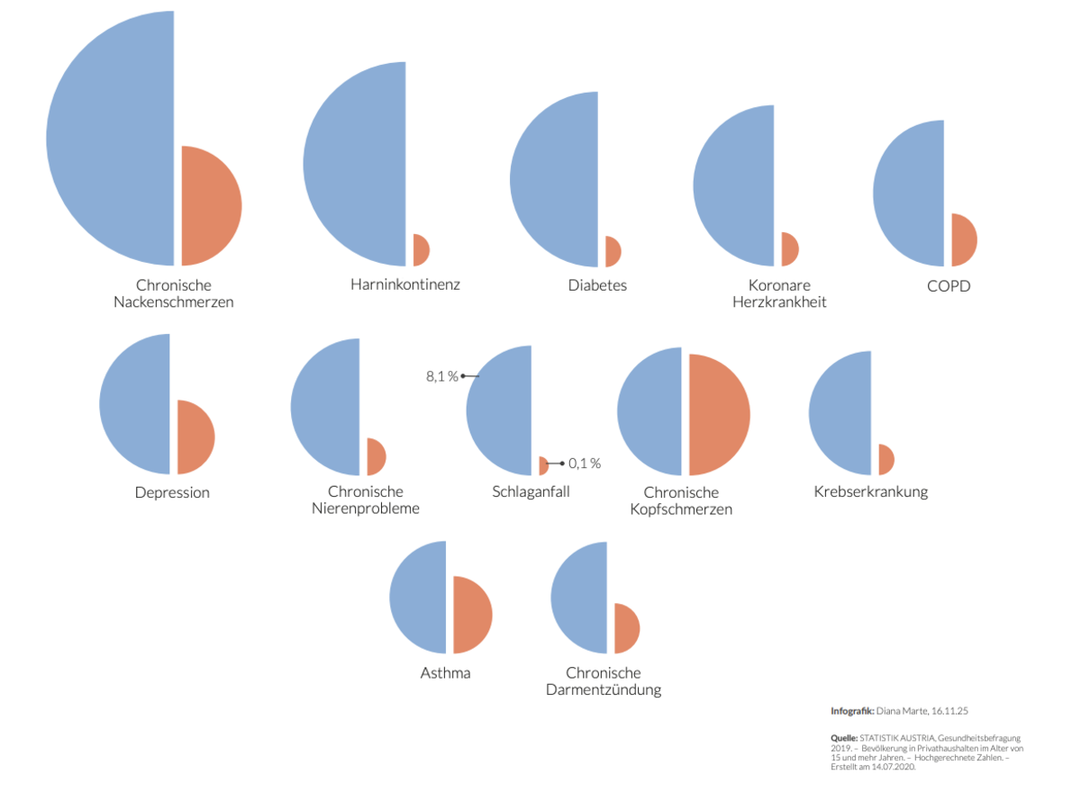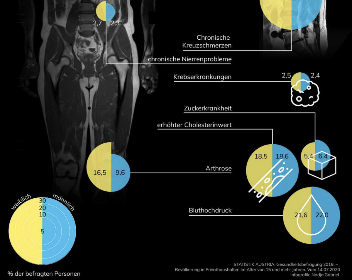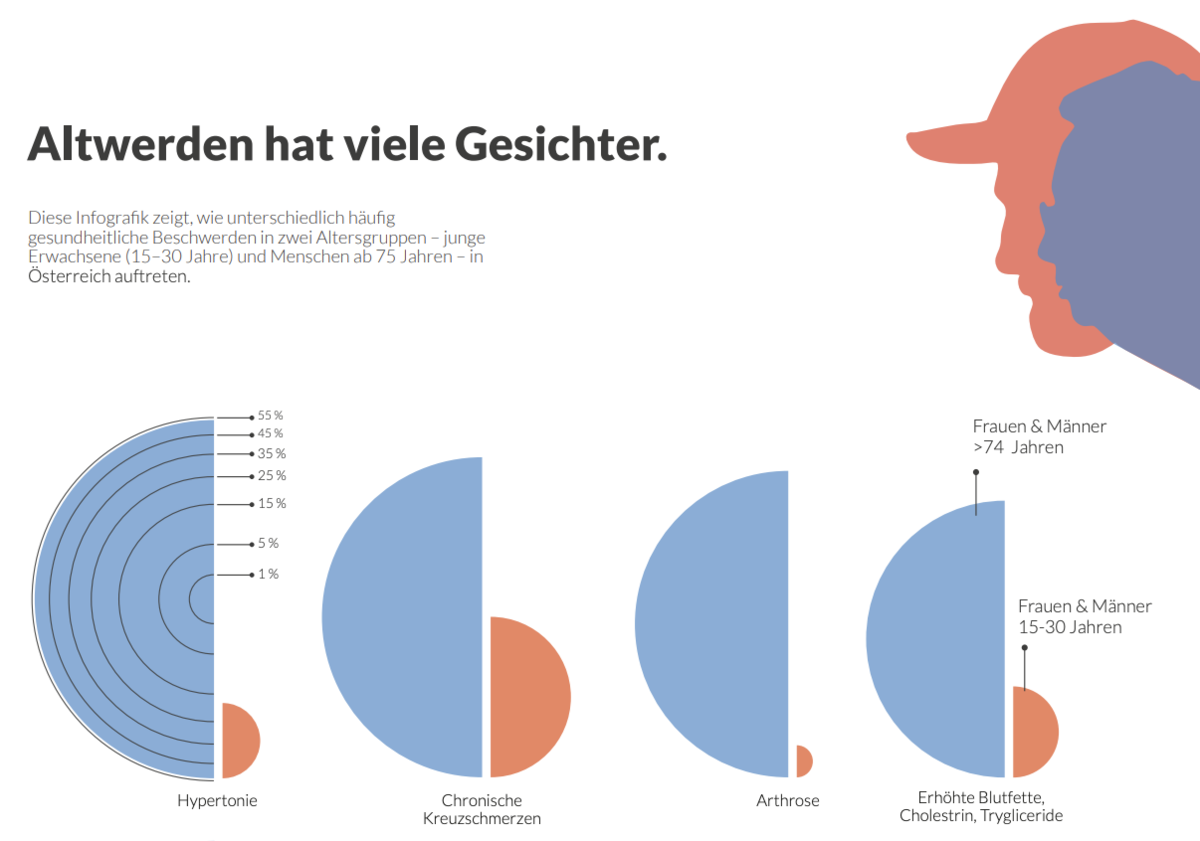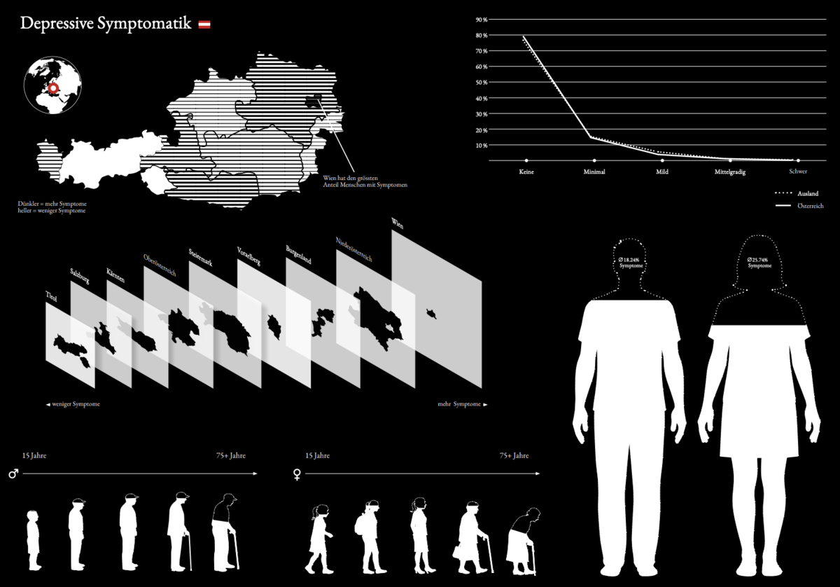 Unterschiedliche Datenaspekte werden visuell miteinander verknüpft und so gestaltet, dass sie gemeinsam eine zusammenhängende Geschichte erzählen. Die entstandene Infografik vermittelt zentrale Aussagen zu aktuellen Zuständen, Entwicklungen und gesellschaftlichen Zusammenhängen und macht komplexe Informationen auf einen Blick erfassbar.