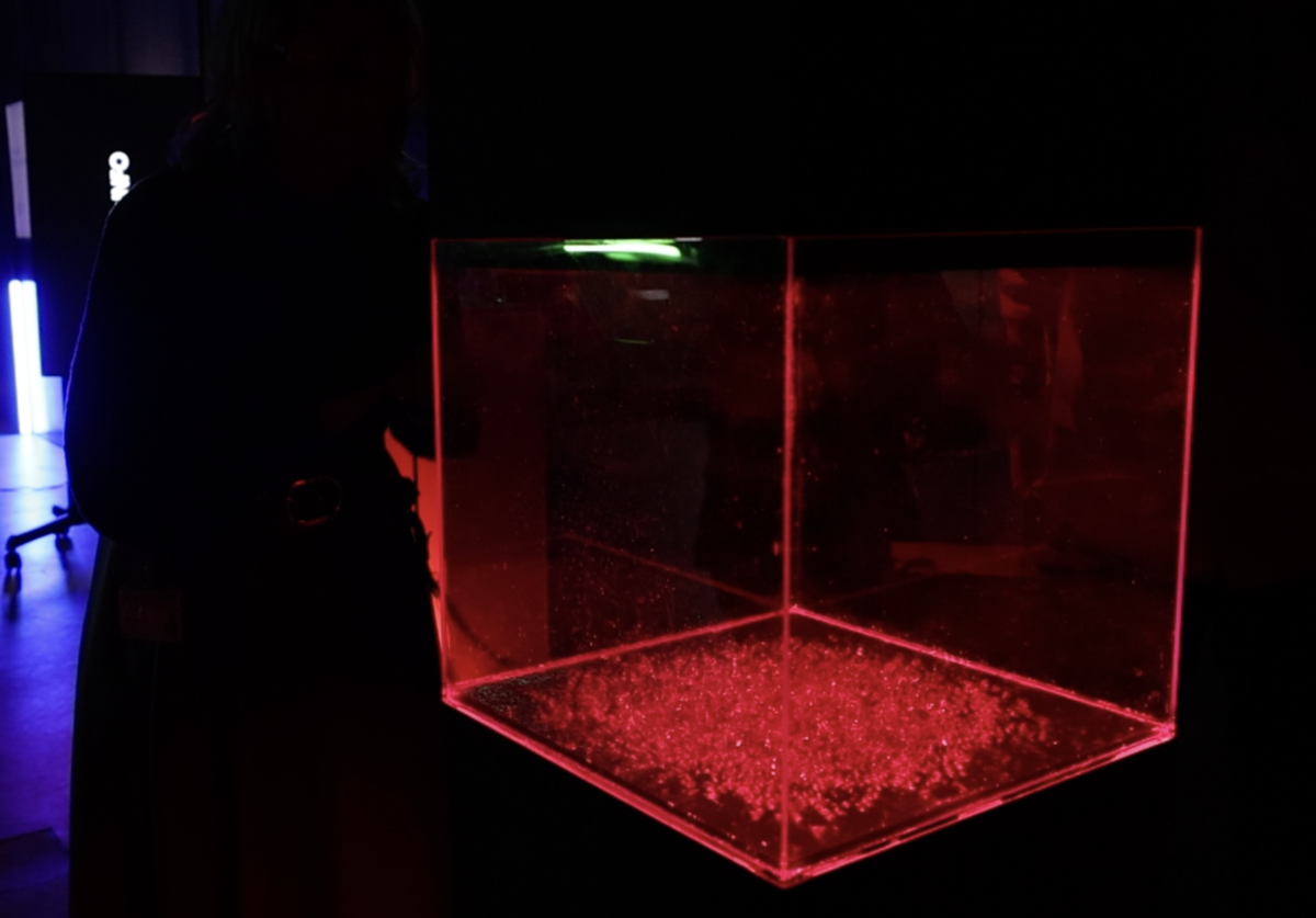 Lasercut, 3D-Druck, interaktive Mixed-Media-Installation, UV-Licht, fluoreszierende Partikel, MadMapper, OBS
