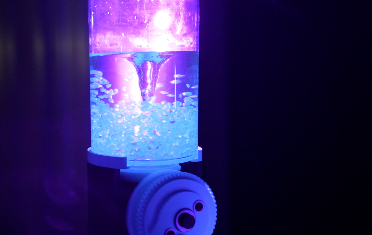 Diese interaktive Installation thematisiert den Wirbel als Kipppunkt zwischen Ordnung und Chaos. Sichtbar wird ein selbstorganisierter Prozess, der ohne äußere Kontrolle entsteht und dennoch neue Formen von Balance hervorbringt. Der Wirbel fungiert als Metapher für persönliche und gesellschaftliche Übergänge und lädt dazu ein, Unsicherheit als Quelle von Veränderung und Vertrauen zu begreifen.